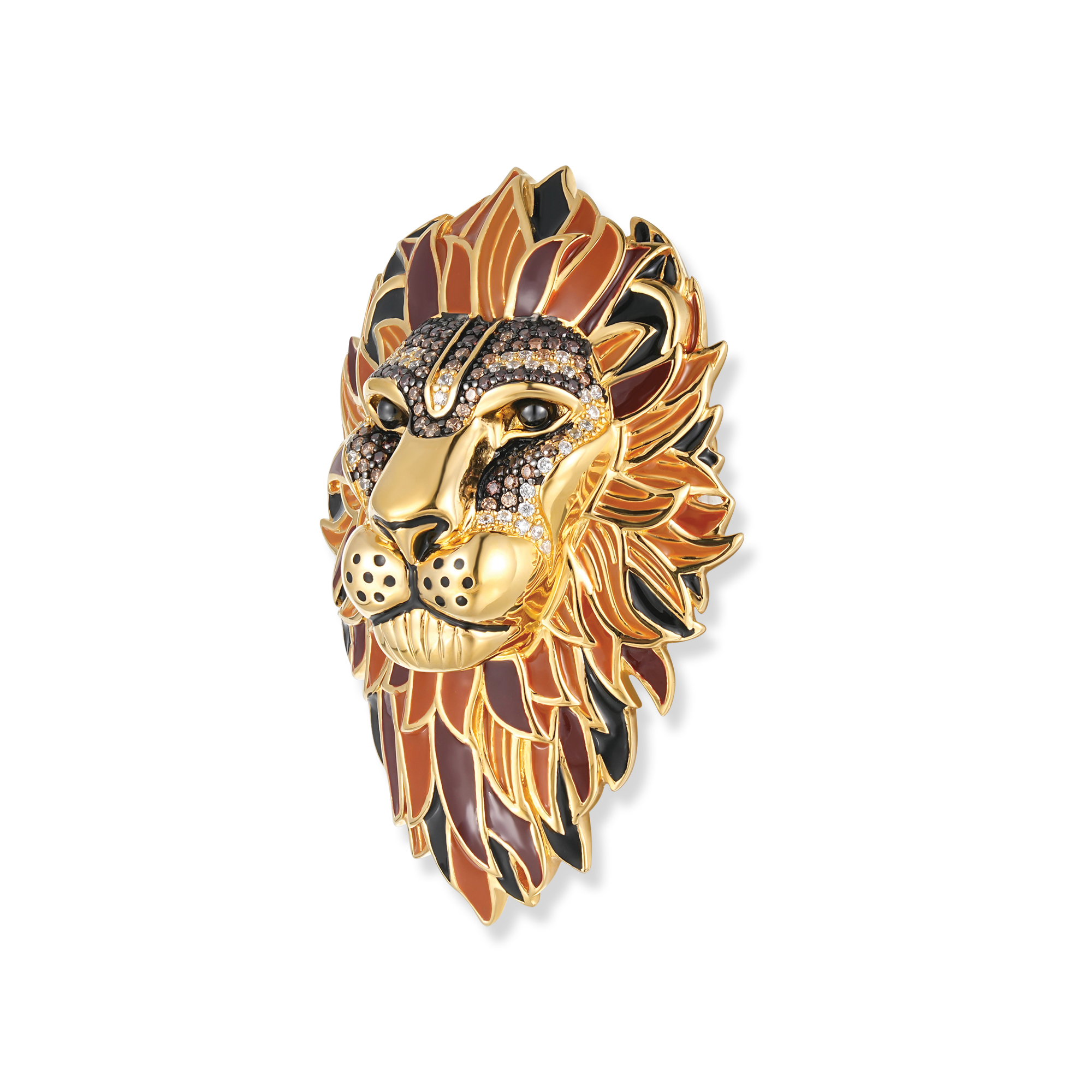 Der Richard Löwenanhänger und gleichzeitig Brosche, gefertigt aus vergoldetem Silber 925, ist ein herausragendes Beispiel für meisterhafte Handwerkskunst und ästhetisches Design. Das hochwertige Silber bildet die Grundlage dieses exquisiten Schmuckstücks, dessen Vergoldung ihm eine luxuriöse Ausstrahlung verleiht. Die Kombination von braunen, weißen Champagner-Zirkonia und naturtöniger Emaille schafft einen faszinierenden Kontrast und betont gleichzeitig die Details der majestätischen Löwenmähne. Jedes Detail wurde mit höchster Präzision umgesetzt, von den funkelnden Zirkonia bis hin zur kunstvollen Emaille in Naturtönen. Der Richard Löwenanhänger und Brosche ist nicht nur ein Accessoire; er ist eine kunstvolle Darstellung von Eleganz und Naturverbundenheit. Die Vielseitigkeit dieses Schmuckstücks, das sowohl als Anhänger an einer Halskette als auch als Brosche an der Kleidung getragen werden kann, unterstreicht seine Einzigartigkeit. Ein perfektes Geschenk für besondere Anlässe oder für jeden, der die Vereinigung von raffinierter Eleganz und natürlicher Schönheit schätzt.