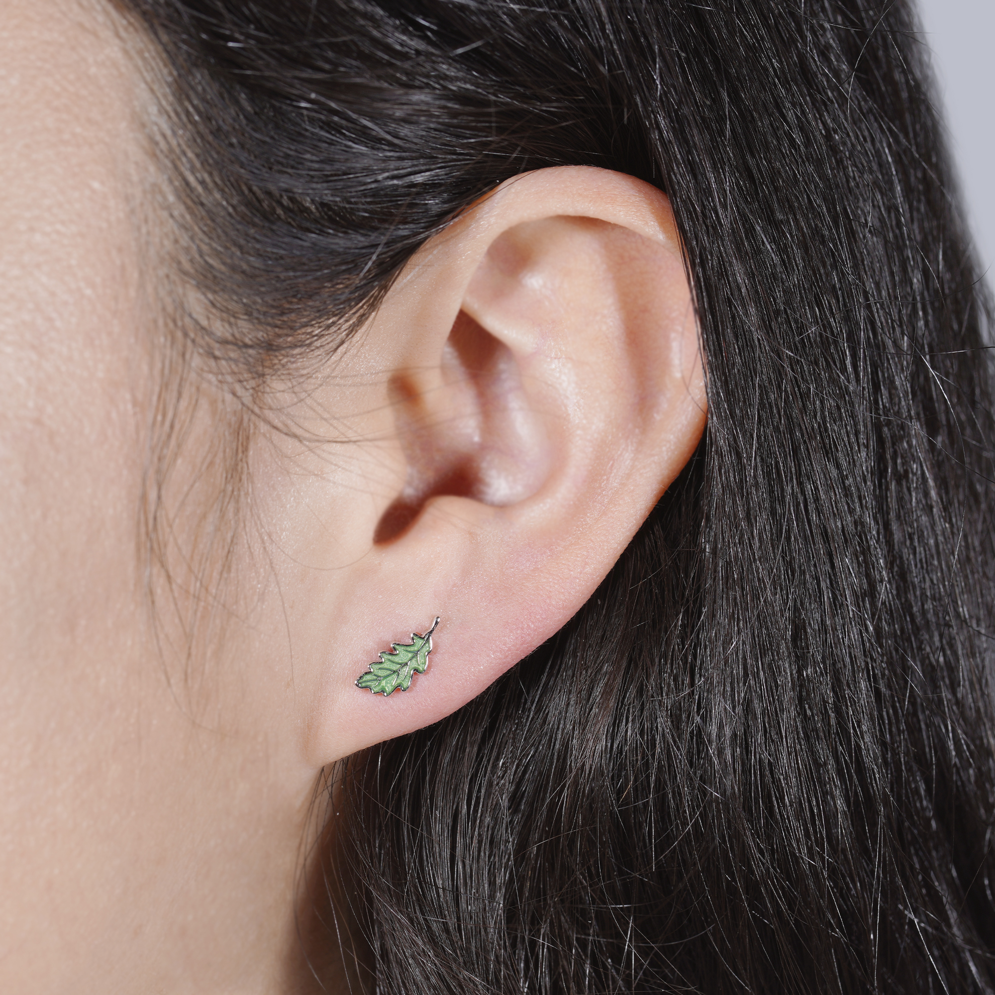 Die Sam Eichenblatt Ohrringe sind exquisite Schmuckstücke aus hochwertigem 925 Sterling Silber gefertigt. Jeder Ohrring ist in Form eines wunderschönen Eichenblatts gestaltet und mit grüner Emaille verziert, die dem Schmuckstück einen Hauch von Farbe und Lebendigkeit verleiht. Die sorgfältige Verarbeitung und das detaillierte Design machen diese Ohrringe zu einem Blickfang. Mit ihrem filigranen und dennoch auffälligen Stil sind sie die perfekte Ergänzung für jeden Anlass. Ob als elegantes Accessoire für formelle Veranstaltungen oder als stilvoller Alltagsschmuck, diese Ohrringe setzen Akzente und unterstreichen Ihren persönlichen Stil. Tragen Sie sie mit Stolz und lassen Sie sich von ihrem einzigartigen Charme verzaubern.