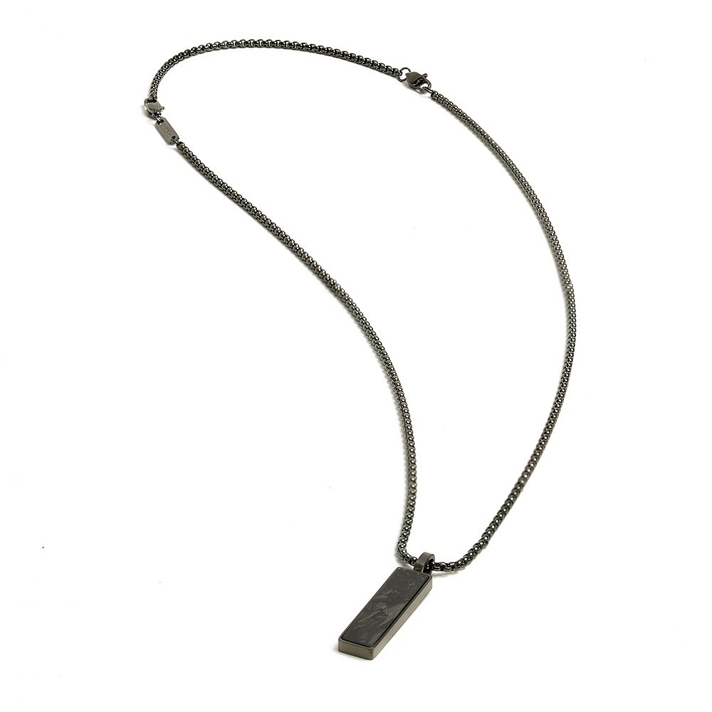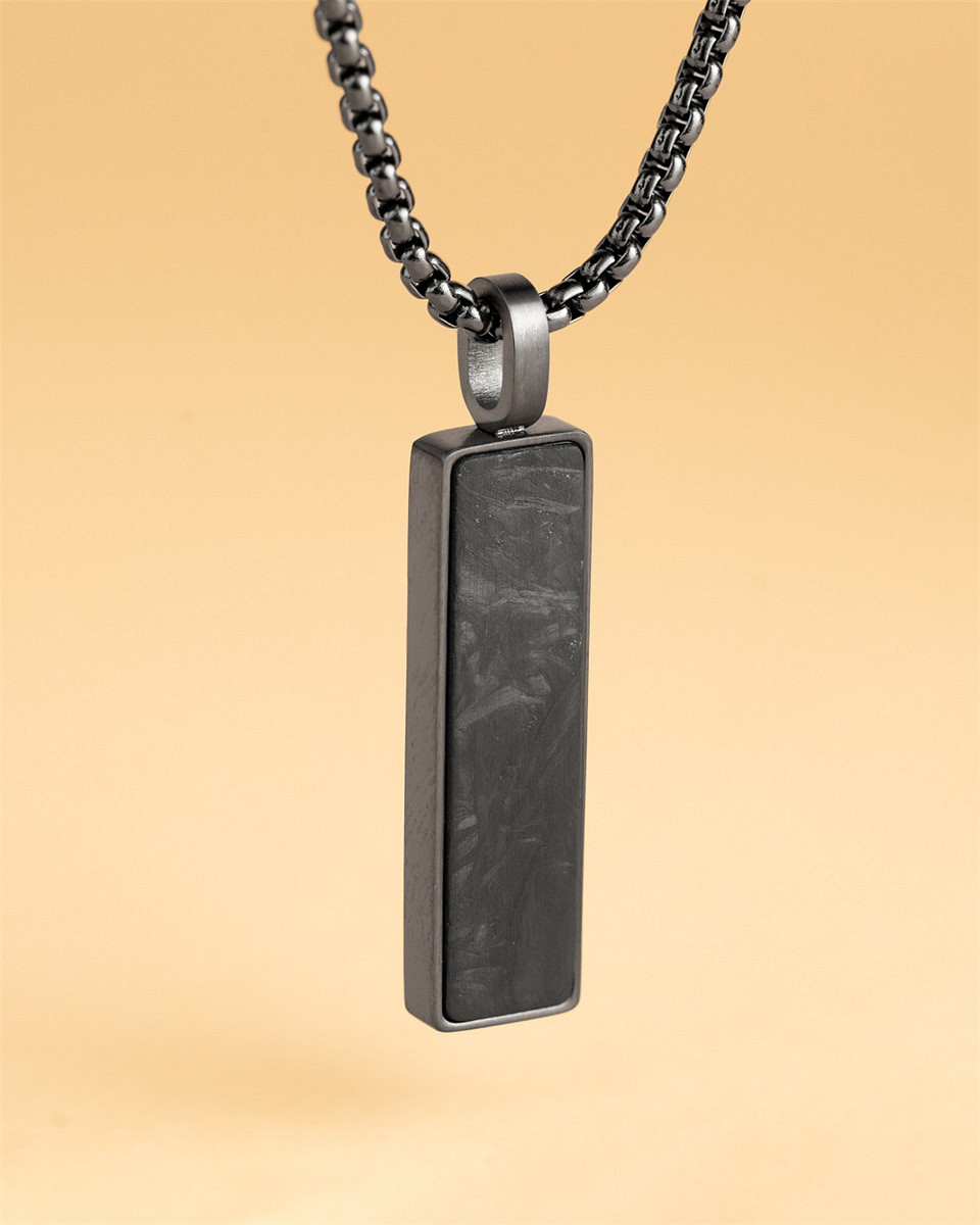 Die Galli Black Halskette ist aus langlebigem Edelstahl gefertigt und mit geschmiedeter Kohlefaser veredelt. Geschmiedetes Karbon wird durch die Komprimierung kleiner Karbonfaserfragmente unter Hitze und Druck hergestellt und bietet außergewöhnliche Haltbarkeit und ein leichtes Tragegefühl. Sein einzigartiges marmoriertes Muster macht es nicht nur unglaublich widerstandsfähig, sondern auch visuell beeindruckend. Es ist wirklich eines unserer Lieblingsmaterialien.
