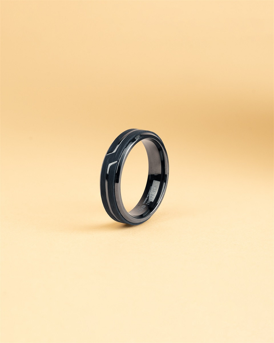 Schwarzer Titanring mit geschmiedetem Carbon-Finish - Rex Black