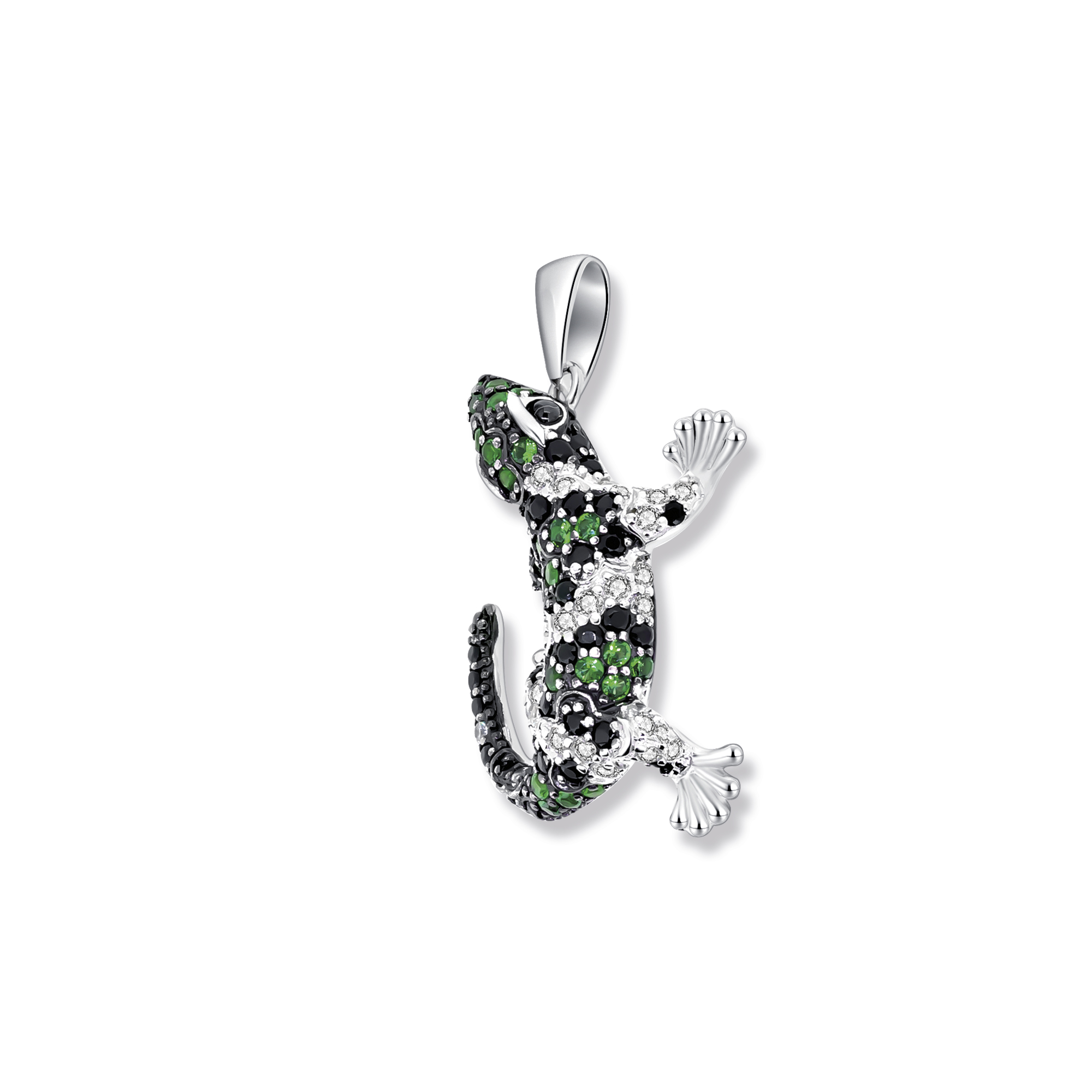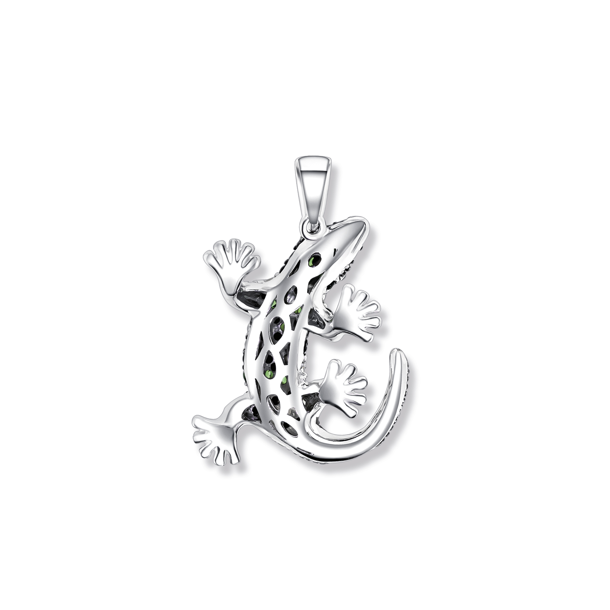 Der Scotty Salamander Anhänger besticht durch seine filigrane Gestaltung. Sorgfältig platzierte grüne und weiße Zirkonia Steine betonen die Struktur und Farben eines Salamanders. Das rhodinierte und geschwärzte Silber verleiht dem Anhänger eine subtile Eleganz und ein zeitloses Aussehen.