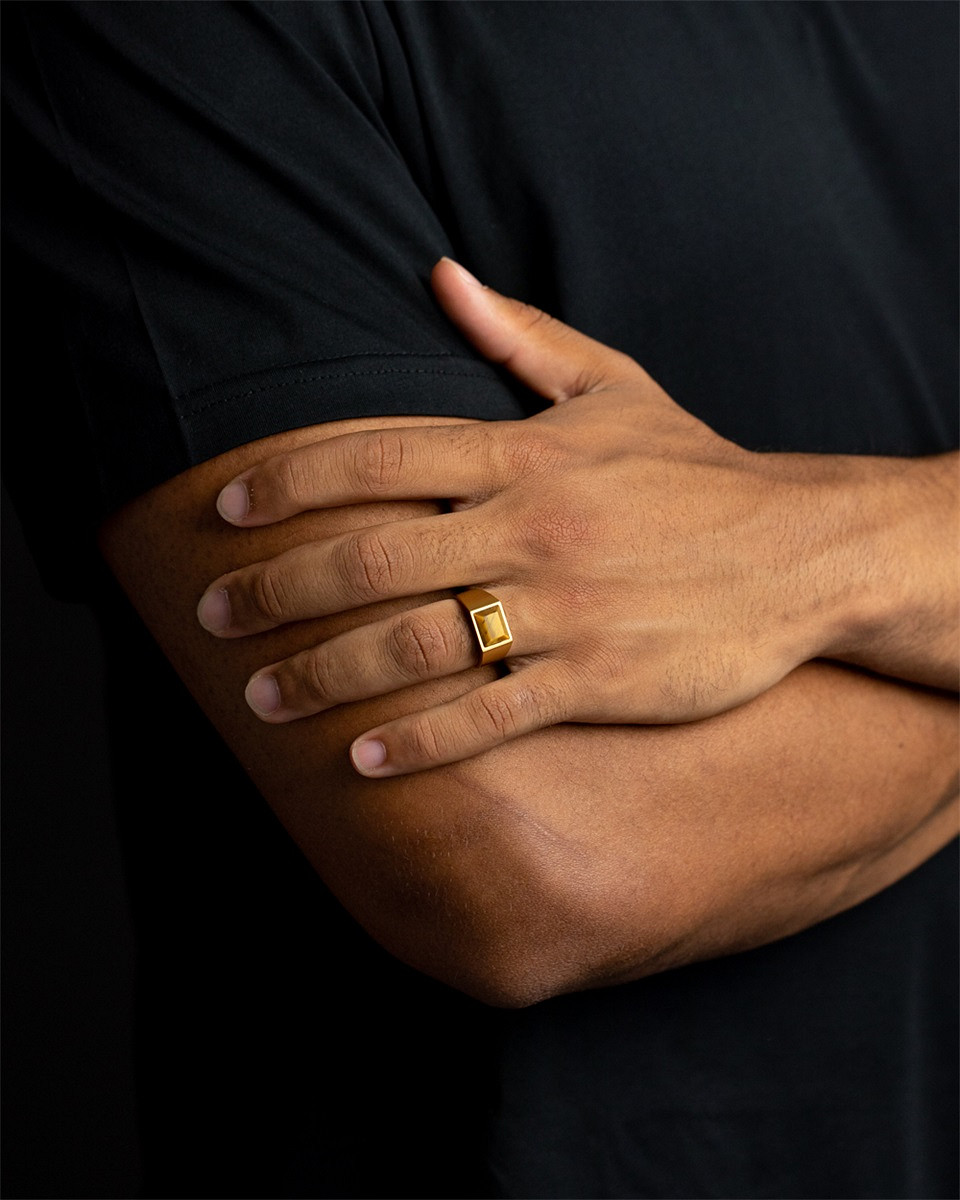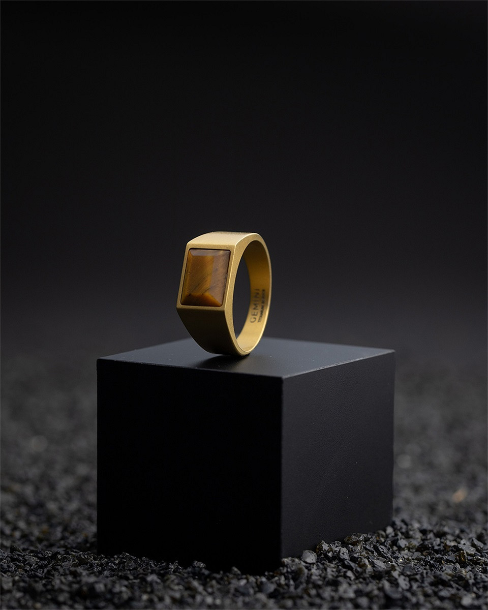 Der Credo Gold Tiger Ring besteht aus Titan und ist mit einem maßgefertigten Tigerauge-Stein veredelt. Dieser Stein ist auch als Stein der Krieger bekannt. Es ist ein kraftvoller Naturstein, der Sie vor negativen äußeren Einflüssen schützt. Es wird auch angenommen, dass es Ihren Mut, Ihre Kraft und Ihre Ausdauer erhöht.