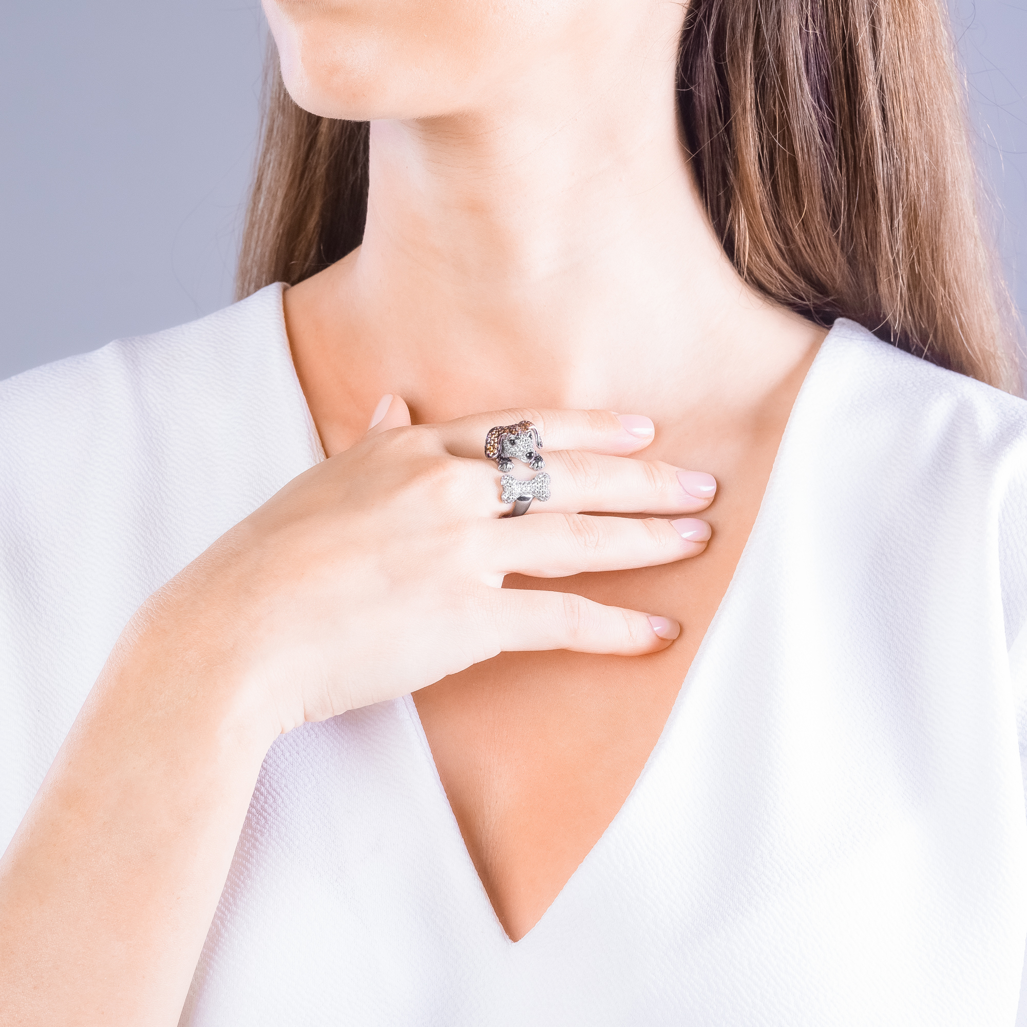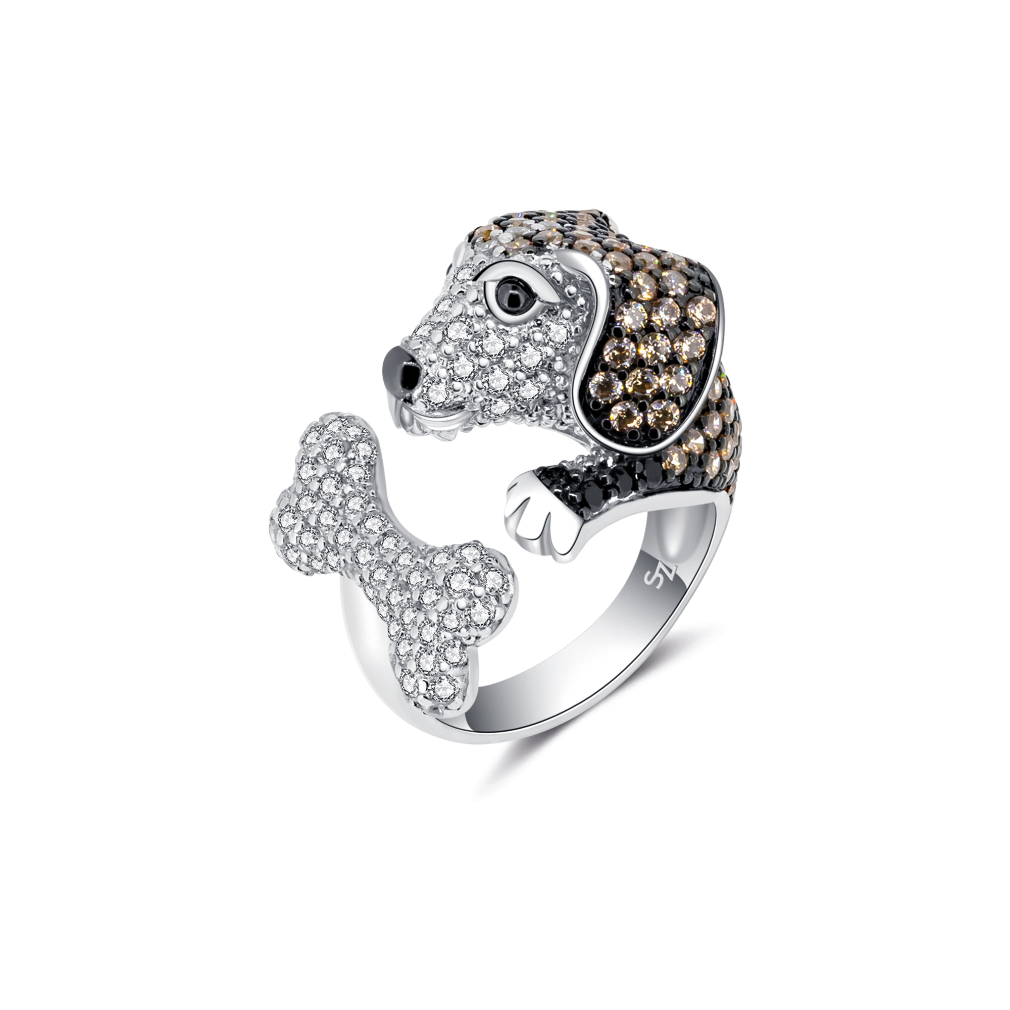 Der Skippy Hunde Ring ist mehr als nur ein Schmuckstück – er ist ein Symbol der engen Beziehung zwischen Mensch und Hund. Hunde sind nicht nur Haustiere, sondern treue Begleiter, die unser Leben auf einzigartige Weise bereichern. Dieser Ring aus hochwertigem 925 Sterling Silber verkörpert diese besondere Verbindung auf stilvolle Art. Die geschwärzte Oberfläche verleiht dem Ring eine raffinierte Note und hebt die filigranen Details des Hundeporträts hervor. In der Mitte des Rings ist der Hundekopf mit geschwärztem und weißem Zirkonia detailliert gestaltet, um den Charme und die Einzigartigkeit der Hunde darzustellen. Die Zirkonia Steine in verschiedenen Brauntönen und Weiß bilden einen harmonischen Kontrast zum geschwärzten Silber. Sie symbolisieren die Vielfalt der Fellfarben von Hunden und unterstreichen die individuelle Persönlichkeit eines jeden Hundes.
