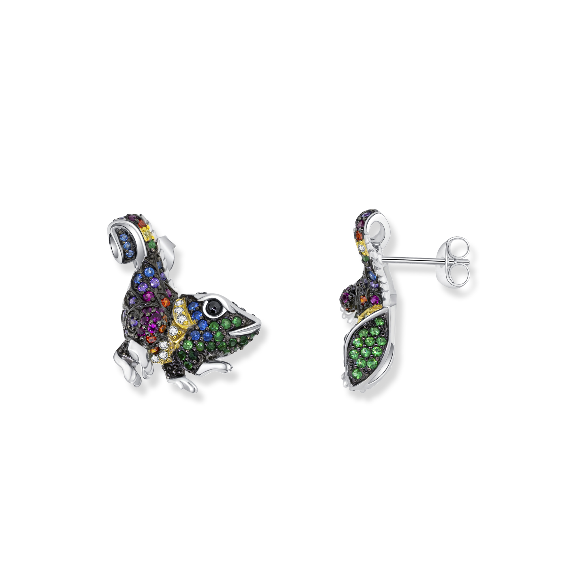 Die Theo Chamäleon Ohrringe sind nicht nur Schmuckstücke, sondern kleine Kunstwerke, die Ihre Persönlichkeit unterstreichen. Hergestellt aus feinstem 925 Sterling Silber, verbinden sie auf meisterhafte Weise Rhodinierung, Geschwärztes und Vergoldetes, um eine faszinierende visuelle Wirkung zu erzeugen. Die Zirkonia Steine in verschiedenen Farben, darunter ein lebendiges Grün, bringen Licht und Leben in diese Ohrringe. Der Kontrast zwischen den verschiedenen Oberflächenbehandlungen verleiht den Ohrringen eine einzigartige Tiefe und betont die Details des Designs. Die Theo Chamäleon Ohrringe sind mehr als nur Schmuck - sie sind Ausdruck Ihrer individuellen Stilvorlieben und Ihrer Vielseitigkeit. Die Farbenpracht dieser Ohrringe erinnert uns daran, dass wir unsere Persönlichkeit mit Stolz zeigen sollten.