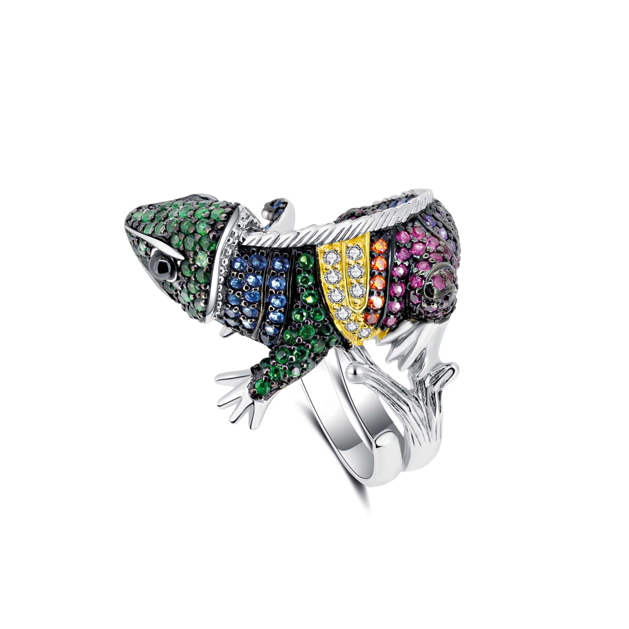 Der Theo Chamäleon Ring ist mehr als nur ein Schmuckstück - er ist ein Ausdruck von Individualität und Stil. Hergestellt aus hochwertigem 925 Sterling Silber, zeichnet sich dieser Ring durch seine meisterhafte Verarbeitung und die lebendige Farbpalette aus. Die Kombination aus Rhodinierung, Geschwärztem und Vergoldung verleiht diesem Ring eine einzigartige visuelle Tiefe und Dimension. Die funkelnden Zirkonia Steine in verschiedenen Farben, darunter ein leuchtendes Grün, fangen das Licht ein und sorgen für einen atemberaubenden Glanz. Der Theo Chamäleon Ring ist ein Ausdruck von Vielseitigkeit und Anpassungsfähigkeit. Er erinnert uns daran, dass wir stolz unsere Farben zeigen sollten. Dieser Ring ist perfekt, um Ihrem Outfit einen Hauch von Farbe und Eleganz zu verleihen.