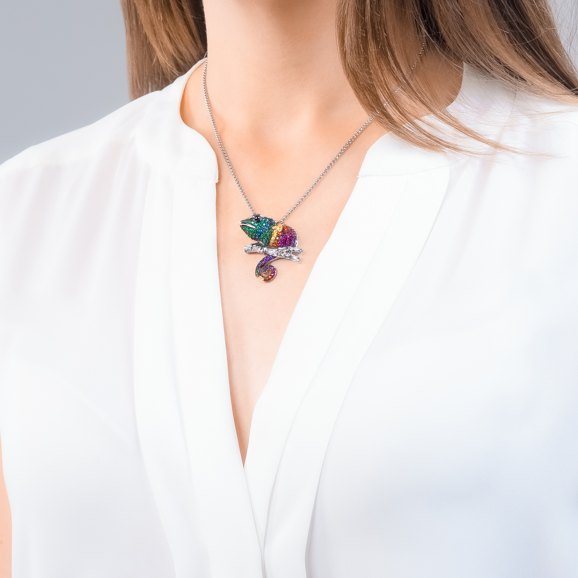 Der Tinka Chamäleon Anhänger ist nicht nur ein Schmuckstück, sondern ein Kunstwerk, das die erstaunliche Vielfalt der Natur zelebriert. Gefertigt aus hochwertigem 925 Sterling Silber, verbindet dieser Anhänger geschickt Rhodinierung, Geschwärztes und Vergoldetes, um ein bezauberndes visuelles Erlebnis zu schaffen.