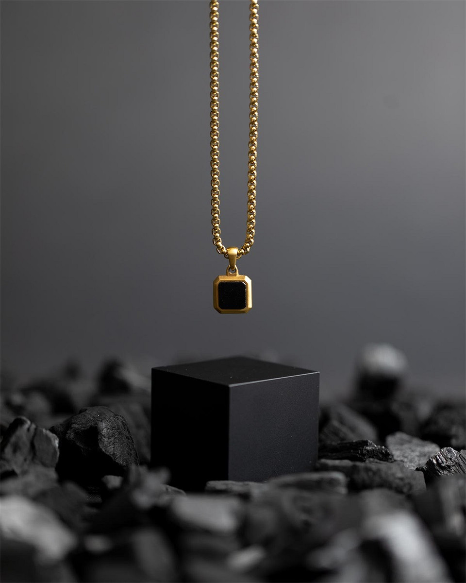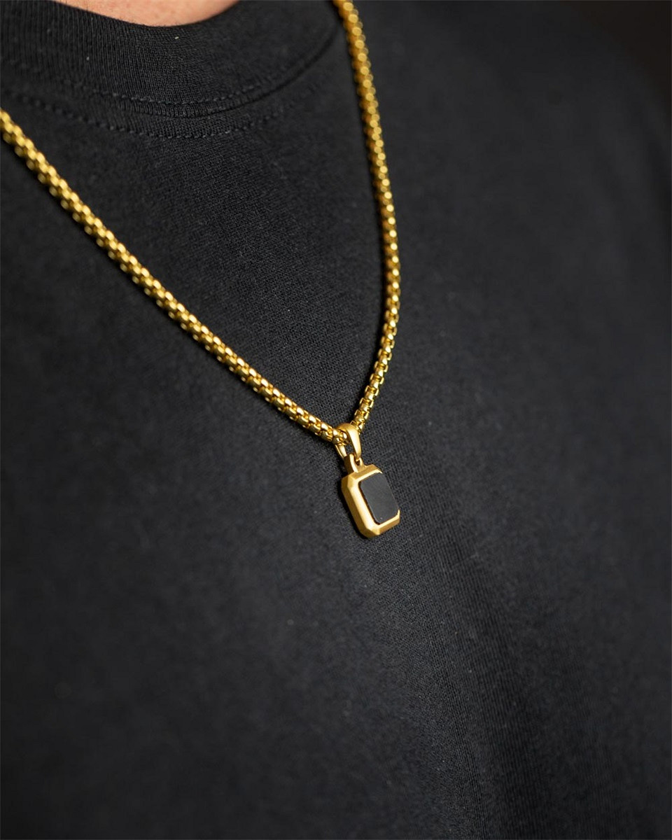 Titan/Stahl-Halskette mit 18-karätigem Goldfinish und schwarzem Achatstein - Meraki Gold Black
