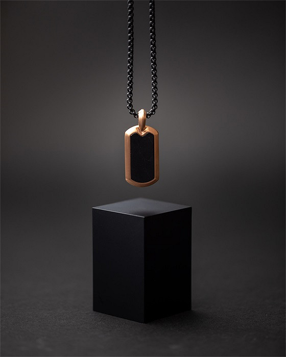 Diese Halskette ist vollständig aus japanischem Titan gefertigt und mit geschmiedetem Kohlenstoff veredelt. Sowohl Titan als auch Carbon sind federleicht, ultrastark und hypoallergen. Diese Materialien werden häufig in der Luft- und Raumfahrt oder in Luxusautos verwendet.