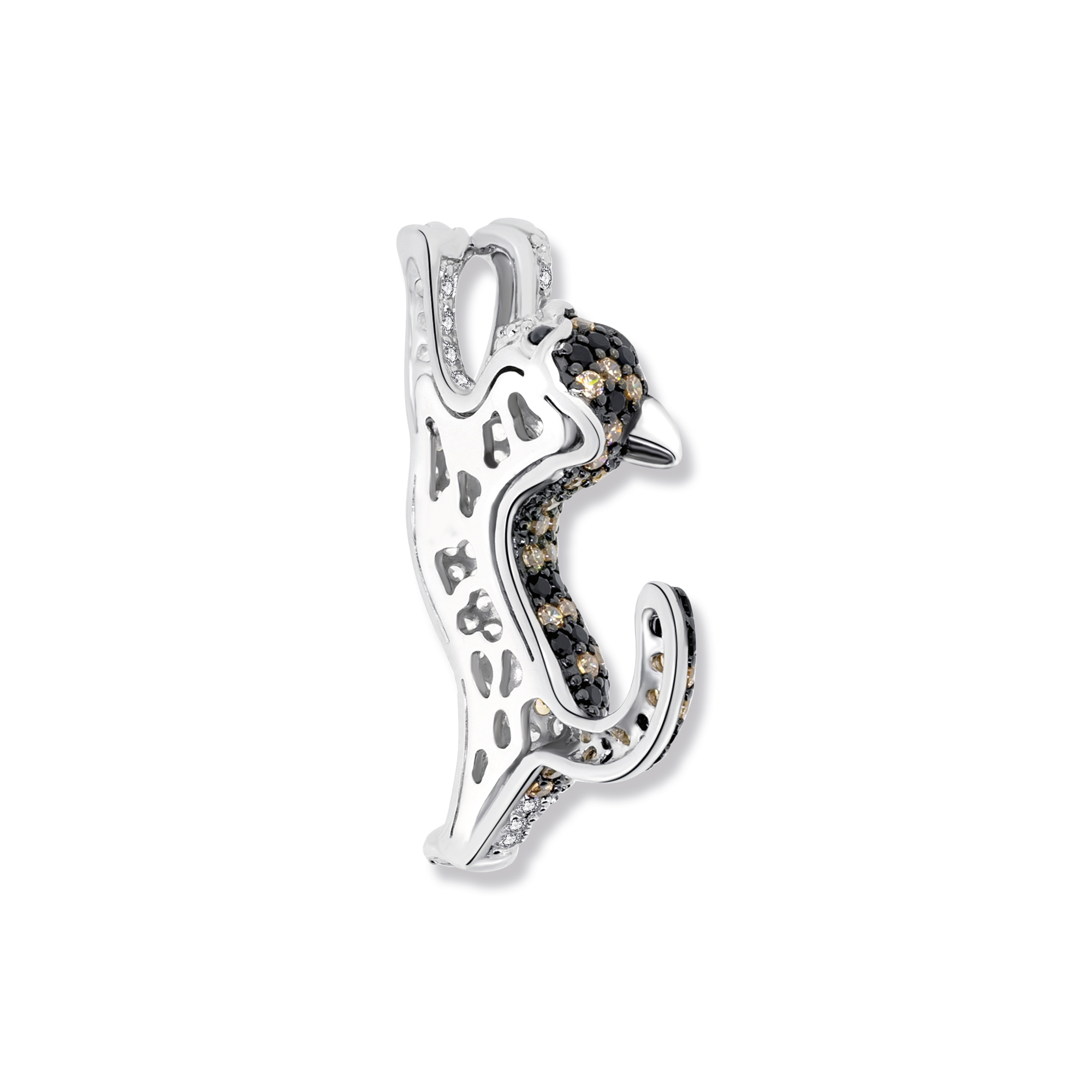 Der Yang Katzen Anhänger ist ein beeindruckendes Schmuckstück aus 925 Sterling Silber, das die Anmut und Energie einer springenden Katze einfängt. Die Kombination aus rhodiniertem Silber und geschwärzten Details verleiht dem Anhänger eine raffinierte Ästhetik. Die Bewegung der springenden Katze wird durch die kunstvoll platzierten Zirkonia Steine in zweifarbiger Ausführung betont. Die braunen und weißen Steine fangen das Licht ein und lassen den Anhänger in einem faszinierenden Glanz erstrahlen. Dieser Anhänger ist mehr als nur ein Schmuckstück. Er ist ein Symbol für Eleganz, Freiheit und Dynamik. Er erinnert daran, wie faszinierend und anmutig die Tierwelt sein kann und lädt dazu ein, die Schönheit der Natur in Ihr tägliches Leben zu integrieren.